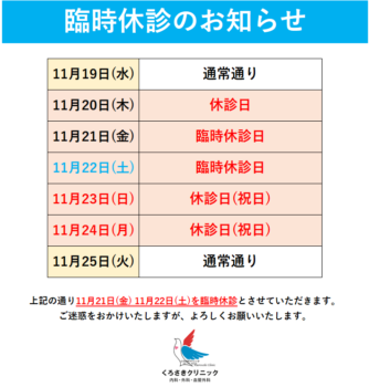11/21(金)11/22(土)臨時休診のお知らせ